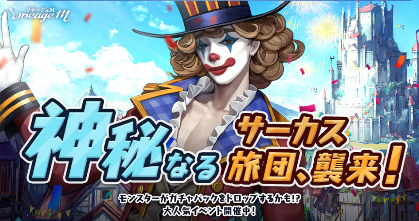 『リネージュM』 ガチャパックや総合コイン箱がドロップする大人気イベント「神秘なるサーカス旅団、襲来!」スタート! 変身カード「サーカス団の双子」がもらえるフォロー&リポストキャンペーンや 「絆の力!血盟レイドタイムアタック ~地竜アンタラスの分身~」開催中