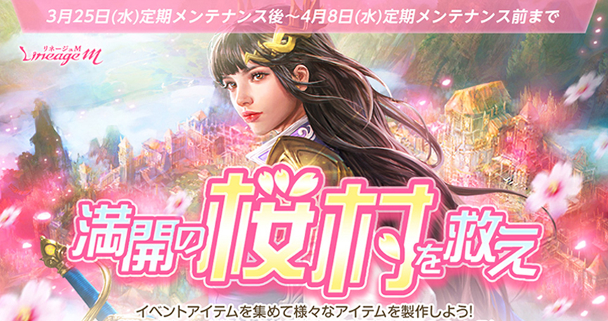 『リネージュM』新たな英雄級変身「桜の少女」獲得のチャンス!イベント「満開の桜村を救え」や期間性イベントコレクションが登場する「スプリングフィッシング」がスタート!
