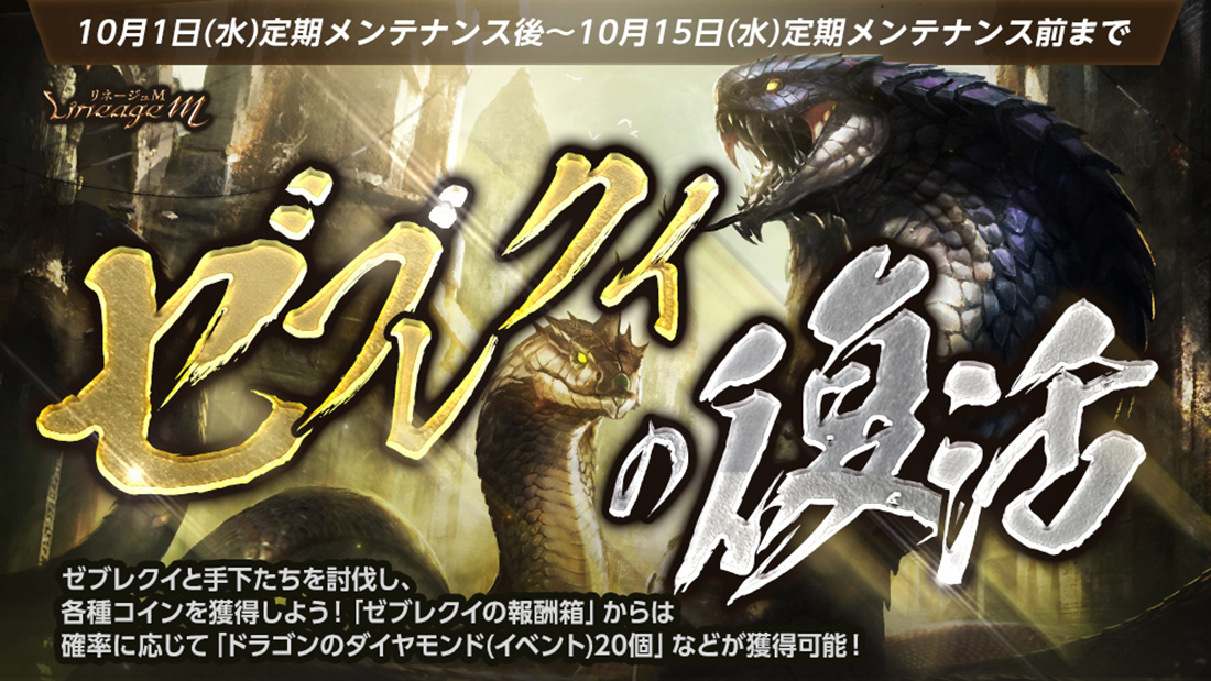 PCオンラインRPG「リネージュ」のモバイル版タイトル『Lineage M(以下、リネージュM)』のサービス、運営をしているエヌ・シー・ジャパン株式会社(本社:東京都港区、代表取締役:林 元基(イム ウォンキ)、以下エヌシージャパン)は、2025年10月1日(水)に期間限定挑戦型コンテンツ「試練の塔」および試練ダンジョン「ゼブレクイの復活」の開始をお知らせします。