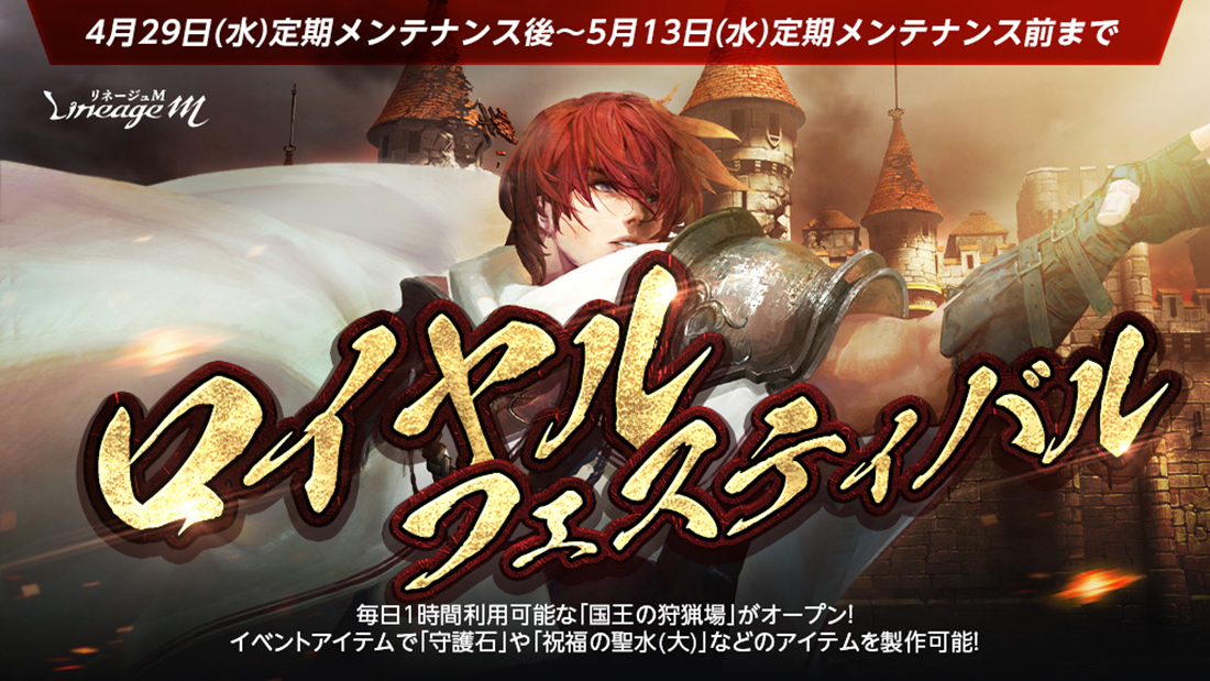 PCオンラインRPG「リネージュ」のモバイル版タイトル『Lineage M(以下、リネージュM)』のサービス、運営をしているエヌ・シー・ジャパン株式会社(本社:東京都港区、代表取締役:林 元基(イム ウォンキ)、以下エヌシージャパン)は、2026年4月29日(水)に春の大型連休(ゴールデンウィーク)を記念したイベント「ロイヤルフェスティバル」を含む3 種のイベントの開始をお知らせします。