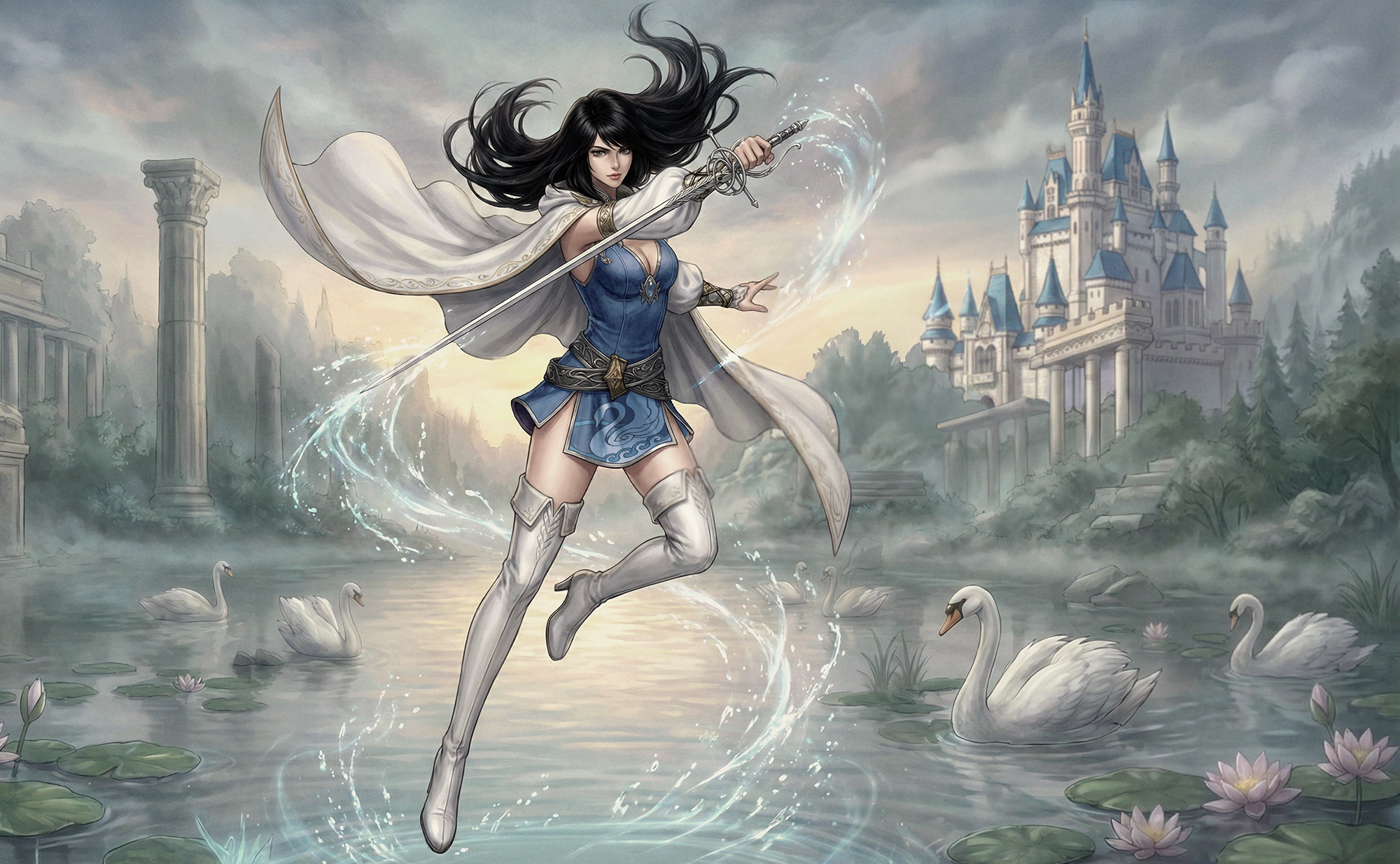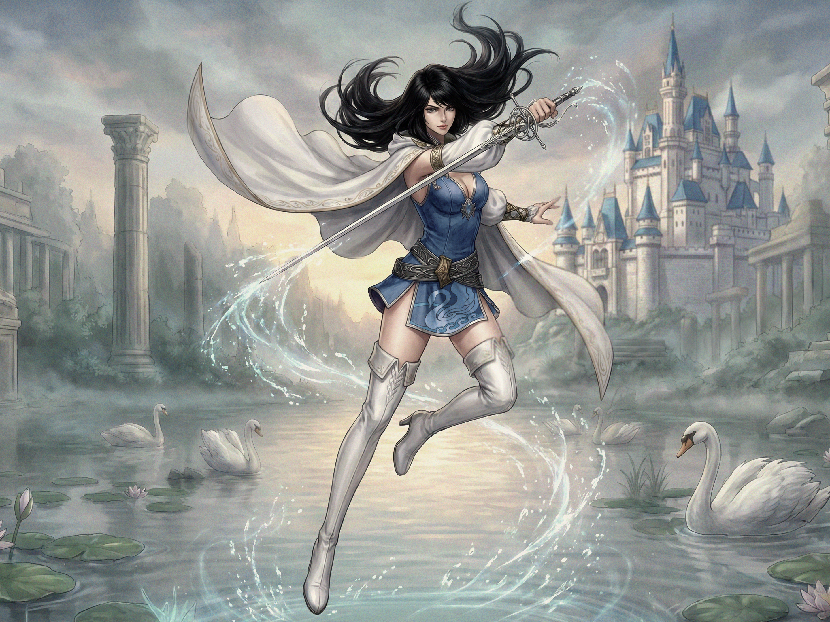에바는 수룡과 맞서 싸울 수밖에 없었다. 물의 여신과 수룡의 전투는 세상을 뒤흔들었다. 왕국 주변의 물은 거칠게 소용돌이쳤다. 치열한 싸움 끝에 에바는 결국 왕국의 가장 깊은 곳에 파푸리온을 봉인하는 데 성공했다.
