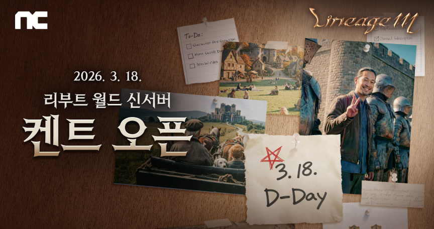 엔씨(NC)는 3월 18일 저녁 8시, △신서버 ‘데스나이트’ △삼국지 컬래버레이션 △인터루드 쿠폰 등 주요 업데이트 내용을 소개하는 생방송 ‘린투엠쑈타임: X2’를 예고했다. 이용자는 〈리니지2M〉 홈페이지에서 ‘팀 미션 사전 이벤트’에 참여할 수 있다. 당첨 시 팀 구성원 모두가 구글플레이 기프트 코드(1만원)를 받는다.