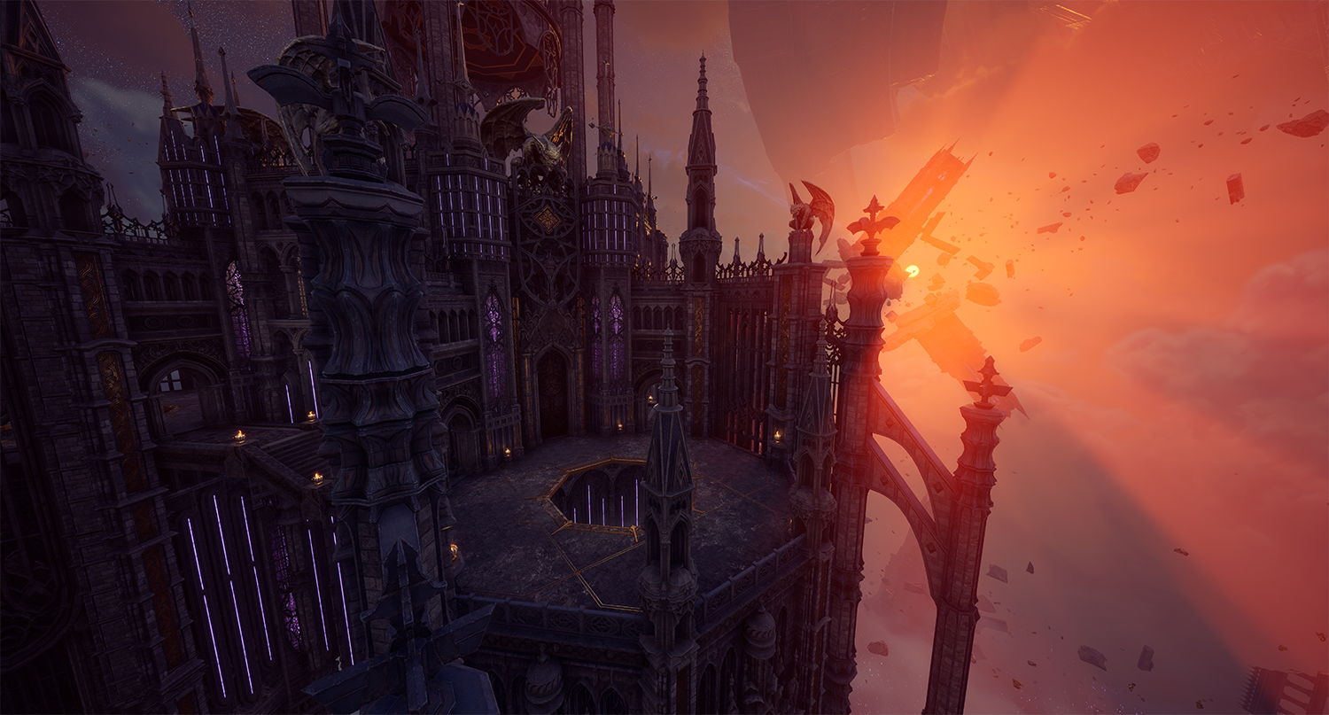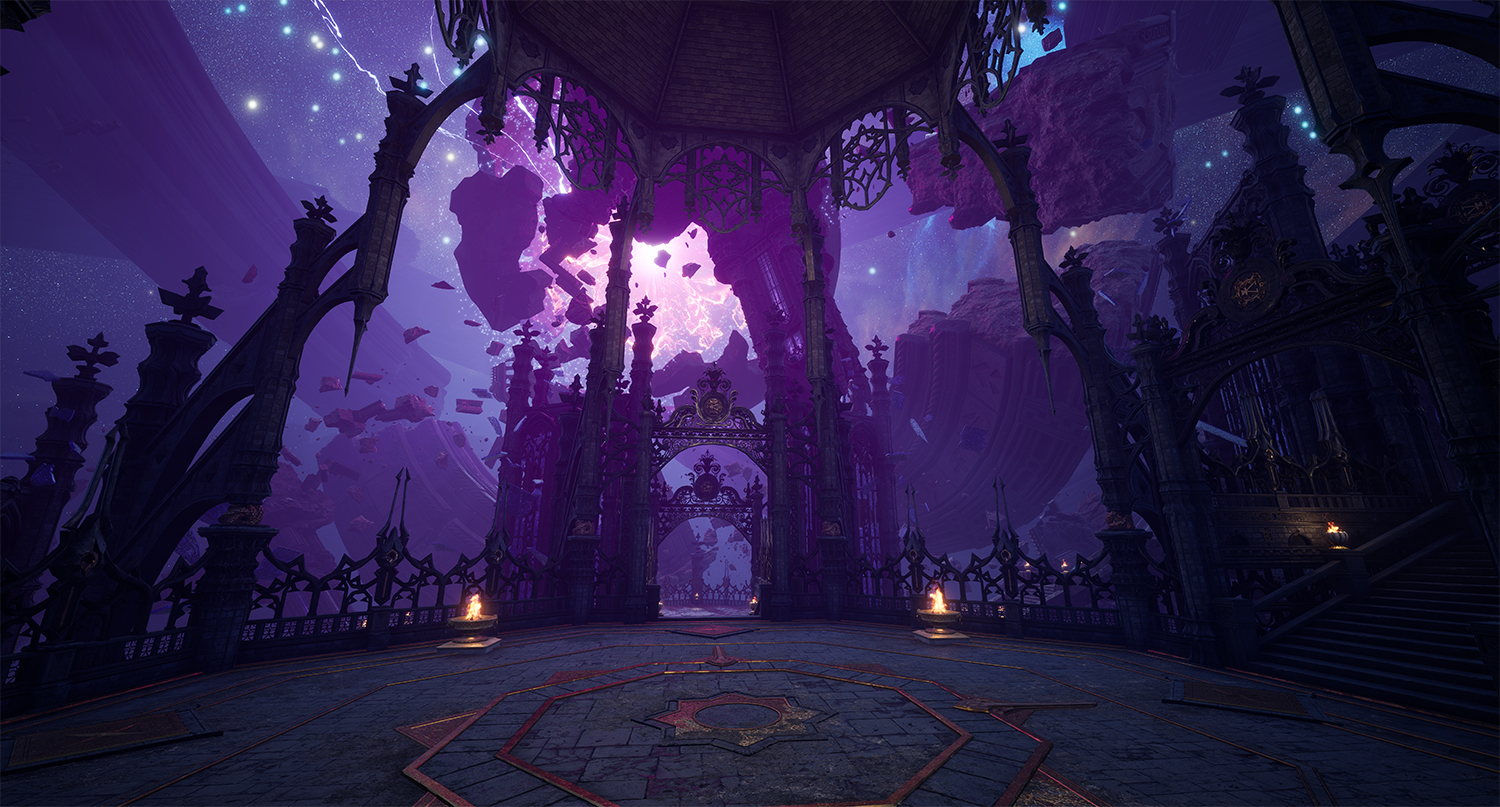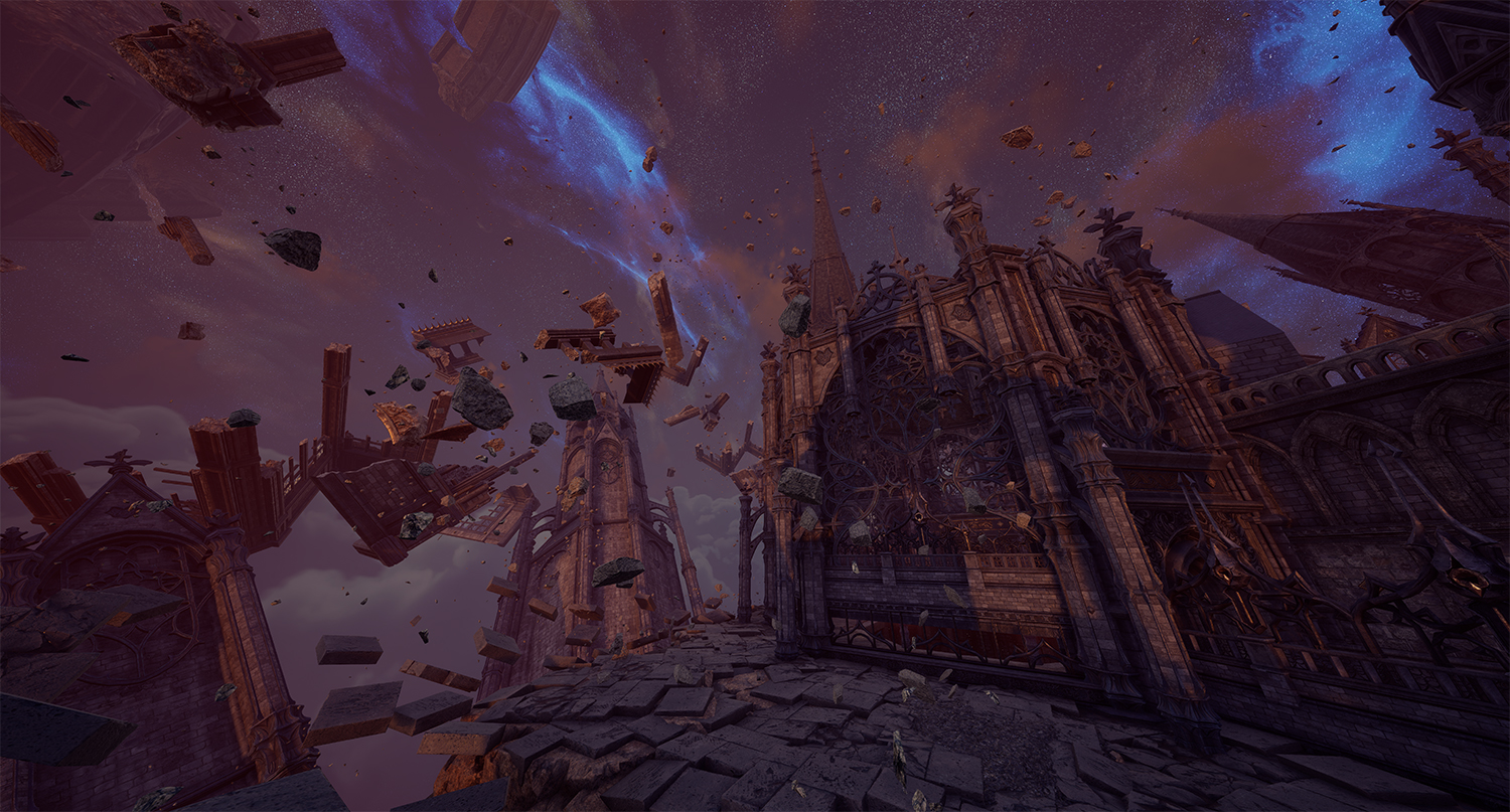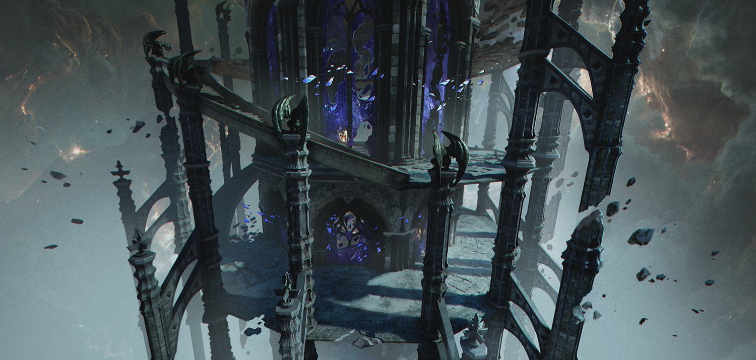 한때 견고한 요새처럼 유지되던 칼란시아의 내면 세계는 붕괴 이후 파편화된 상태로 남아 있다. 이 세계는 특정한 형태나 위치에 고정되지 않은 채 부유하는 구조로 표현된다. 이는 기존 레이드가 지녔던 ‘견고한 난관’의 이미지와 대비되며, 감정 붕괴 이후에 남겨진 공허함과 불안정성을 시각적으로 드러낸다. 부서진 공간에서 드러나는 날카로운 파편들은 칼란시아의 뾰족해진 감정 그 자체이다. 분노와 집착, 상실과 갈망이 뒤섞이며 공간은 예측할 수 없는 형태로 변화한다. 이에 따라 전반적인 구조 역시 지속적인 불안정 상태를 유지한다. 안정된 구조는 더 이상 존재하지 않으며, 모든 것은 붕괴 직전의 긴장감을 유지한 채 떠 있는 상태이다.