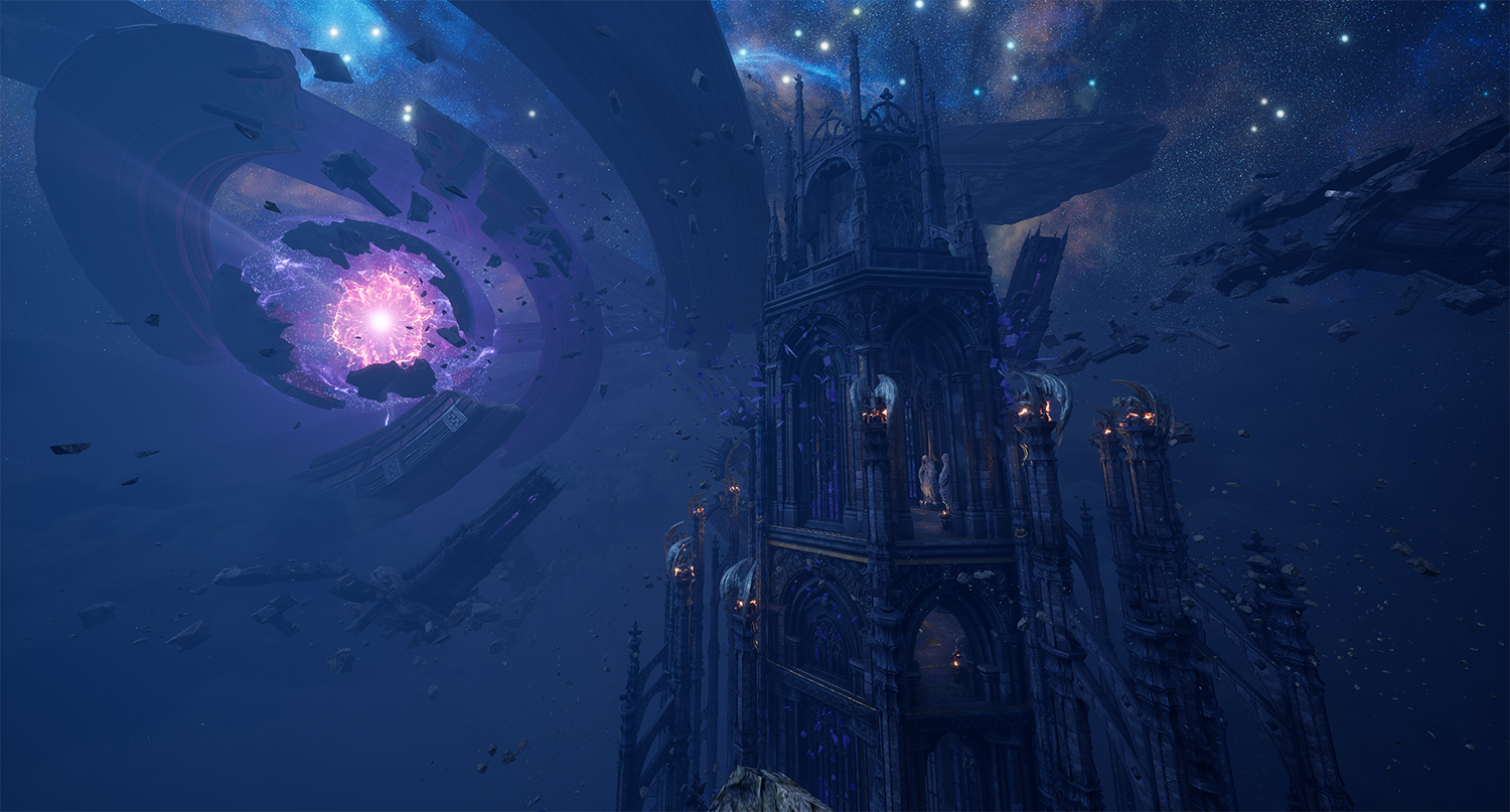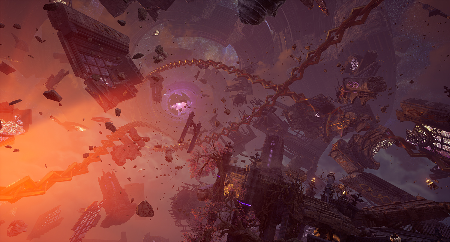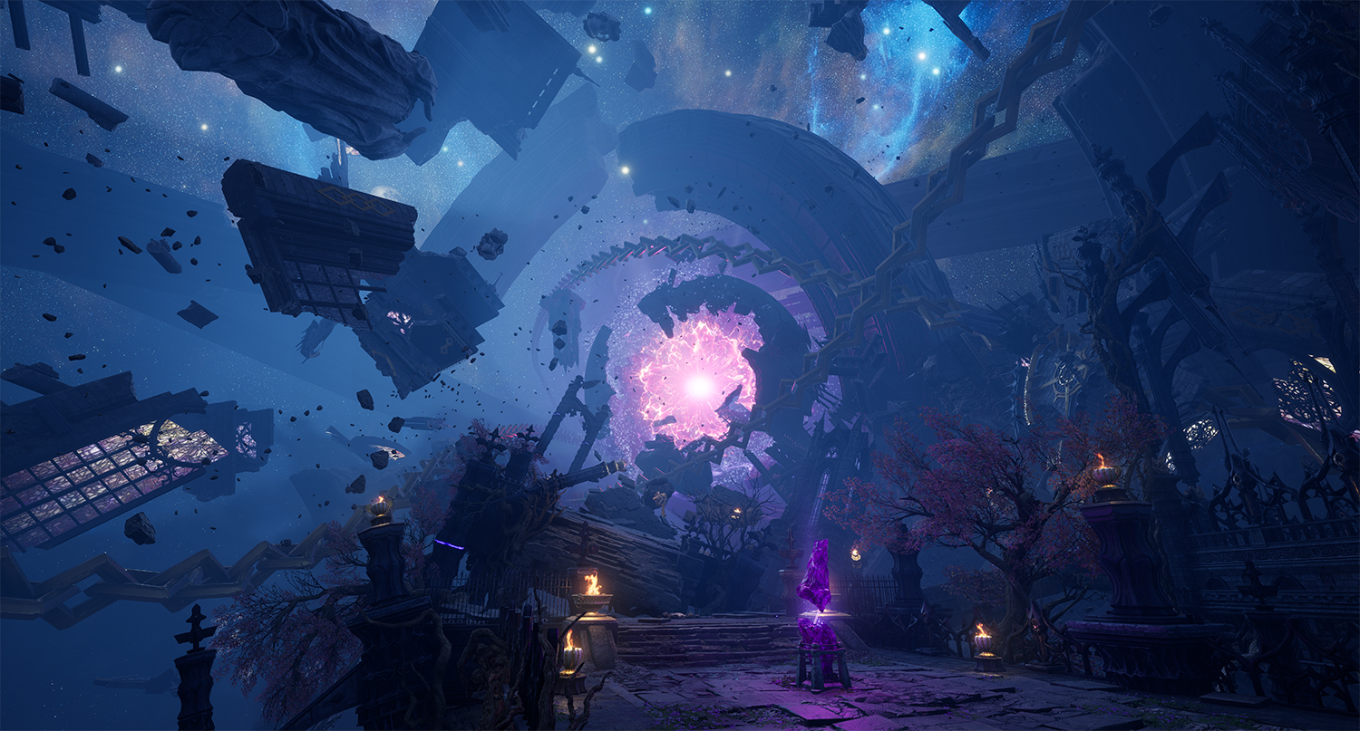 한때 견고한 요새처럼 유지되던 칼란시아의 내면 세계는 붕괴 이후 파편화된 상태로 남아 있다. 이 세계는 특정한 형태나 위치에 고정되지 않은 채 부유하는 구조로 표현된다. 이는 기존 레이드가 지녔던 ‘견고한 난관’의 이미지와 대비되며, 감정 붕괴 이후에 남겨진 공허함과 불안정성을 시각적으로 드러낸다. 부서진 공간에서 드러나는 날카로운 파편들은 칼란시아의 뾰족해진 감정 그 자체이다. 분노와 집착, 상실과 갈망이 뒤섞이며 공간은 예측할 수 없는 형태로 변화한다. 이에 따라 전반적인 구조 역시 지속적인 불안정 상태를 유지한다. 안정된 구조는 더 이상 존재하지 않으며, 모든 것은 붕괴 직전의 긴장감을 유지한 채 떠 있는 상태이다.